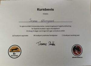 Jeg har hermed bestået Træneruddannelse i belønningsbaseret fuglehundetræning, som skal bruges til at træne en masse skønne spaniels i Region Nordjylland